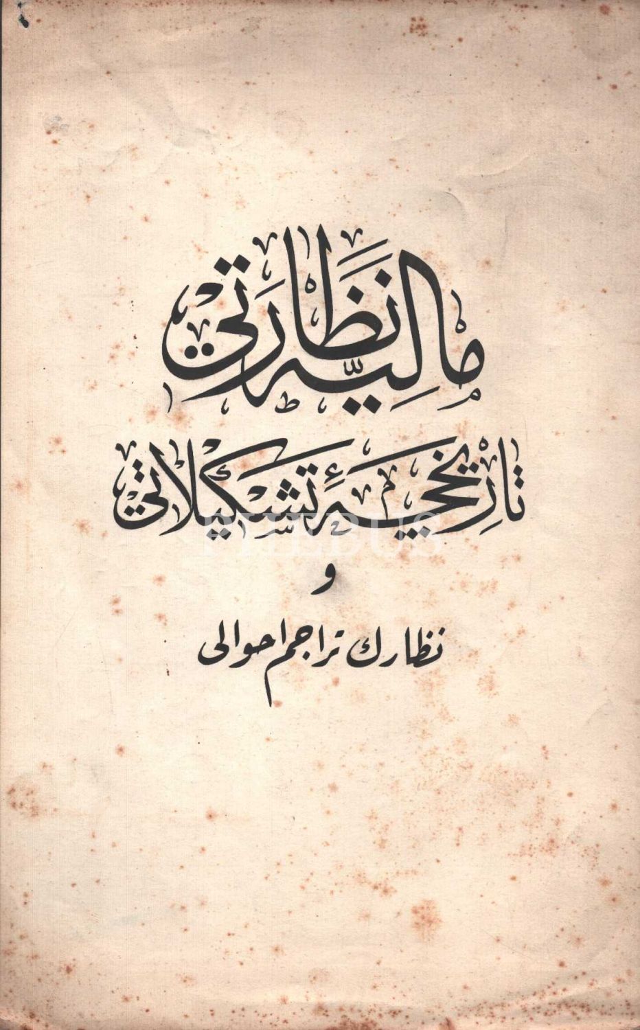 "Maliye Nezareti Tarihçe-i Teşkilâtı ve Nüzzârın tercüme-i ahvali" yazılı celi sülüs ve rika çalışması, 17x28 cm...