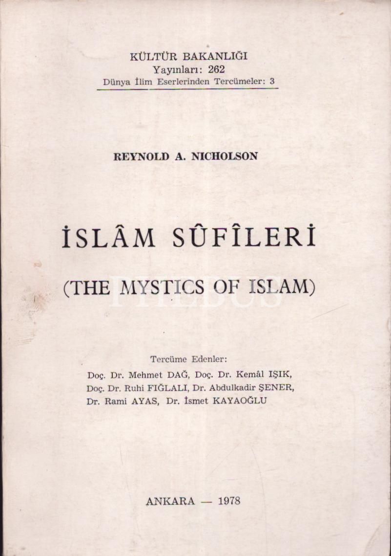 İSLÂM SÛFÎLERİ (The Mystics Of Islam), Reynold A. Nicholson, Ankara 1978, Kültür Bakanlığı Yayınları, 155 sayfa...