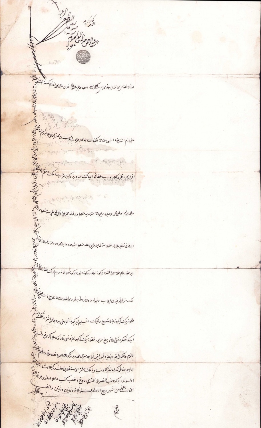 Osmanlıca hüccet, Sandıklı kazası Çakır Mahallesinde Hacı Mustafa efendi ve ortaklarına ait mal paylaşımı, 25x47 cm
