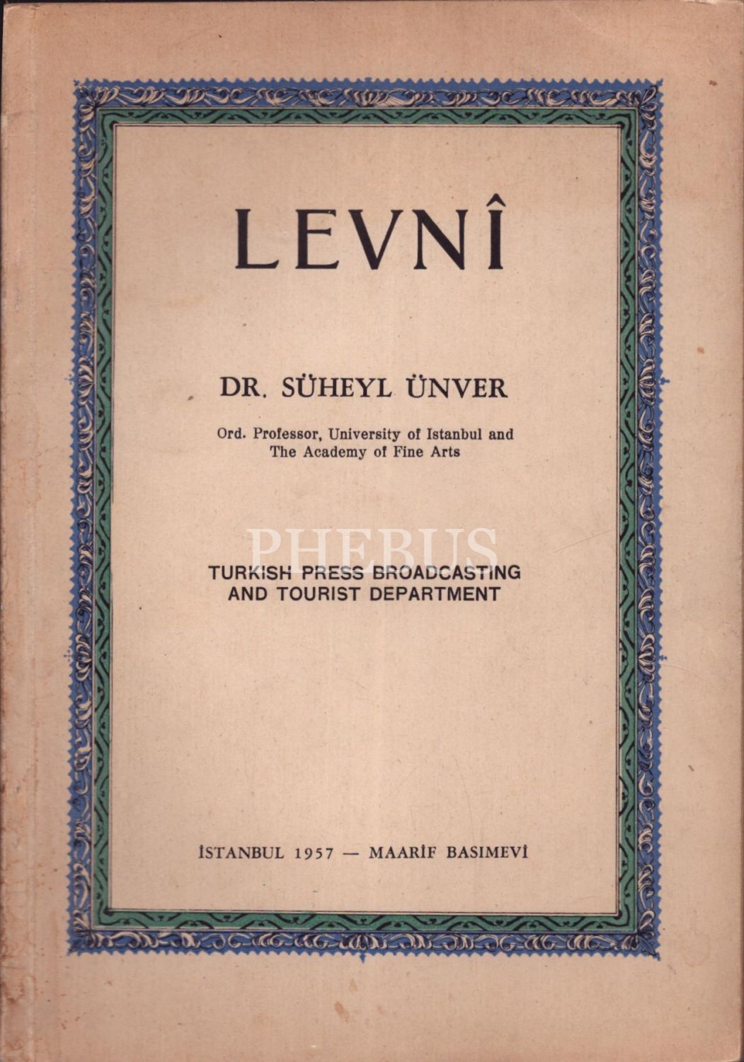 LEVNÎ, Dr. Süheyl Ünver, İstanbul 1957, Maarif Basımevi, 15 sayfa + 33 sayfa resim...