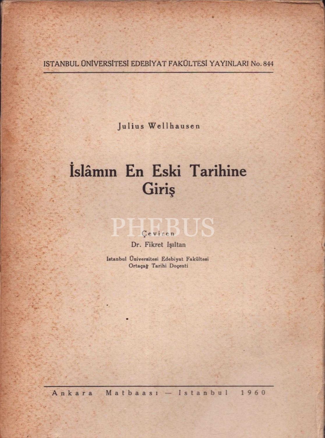 İSLÂMIN EN ESKİ TARİHİNE GİRİŞ, Julius Wellhausen, çeviren: Fikret Işıltan, İstanbul 1960, İstanbul Üniversitesi Edebiyat Fakültesi Yayınları, 144 sayfa...