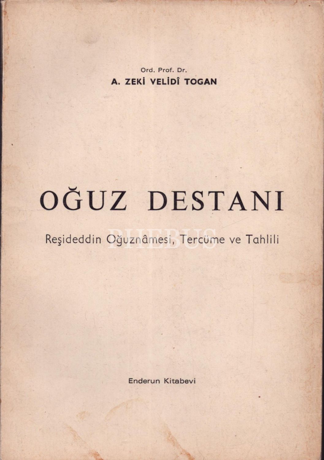OĞUZ DESTANI (Reşeddin Oğuznâmesi, Tercüme ve Tahlili), A.Zeki Velidî Togan, İstanbul 1982, Enderun Kitabevi, 164 sayfa...