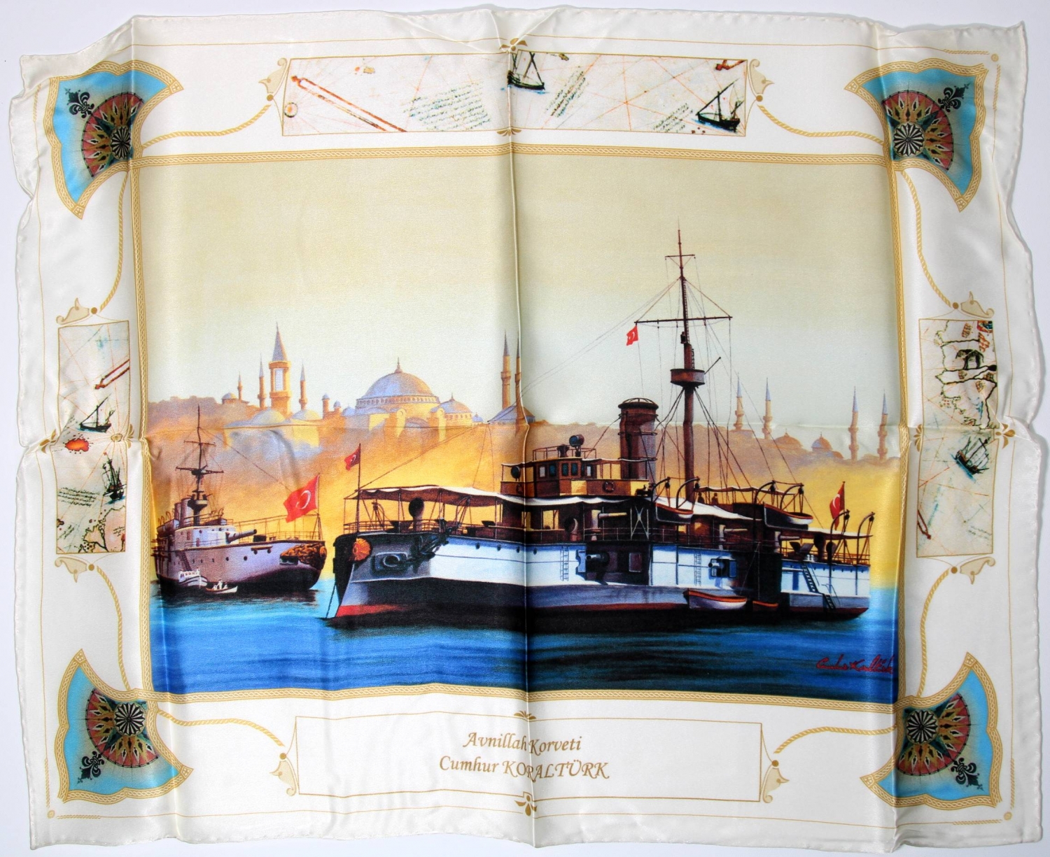 Avnillah Korveti, hatıra ipek mendil, 32x39 cm
