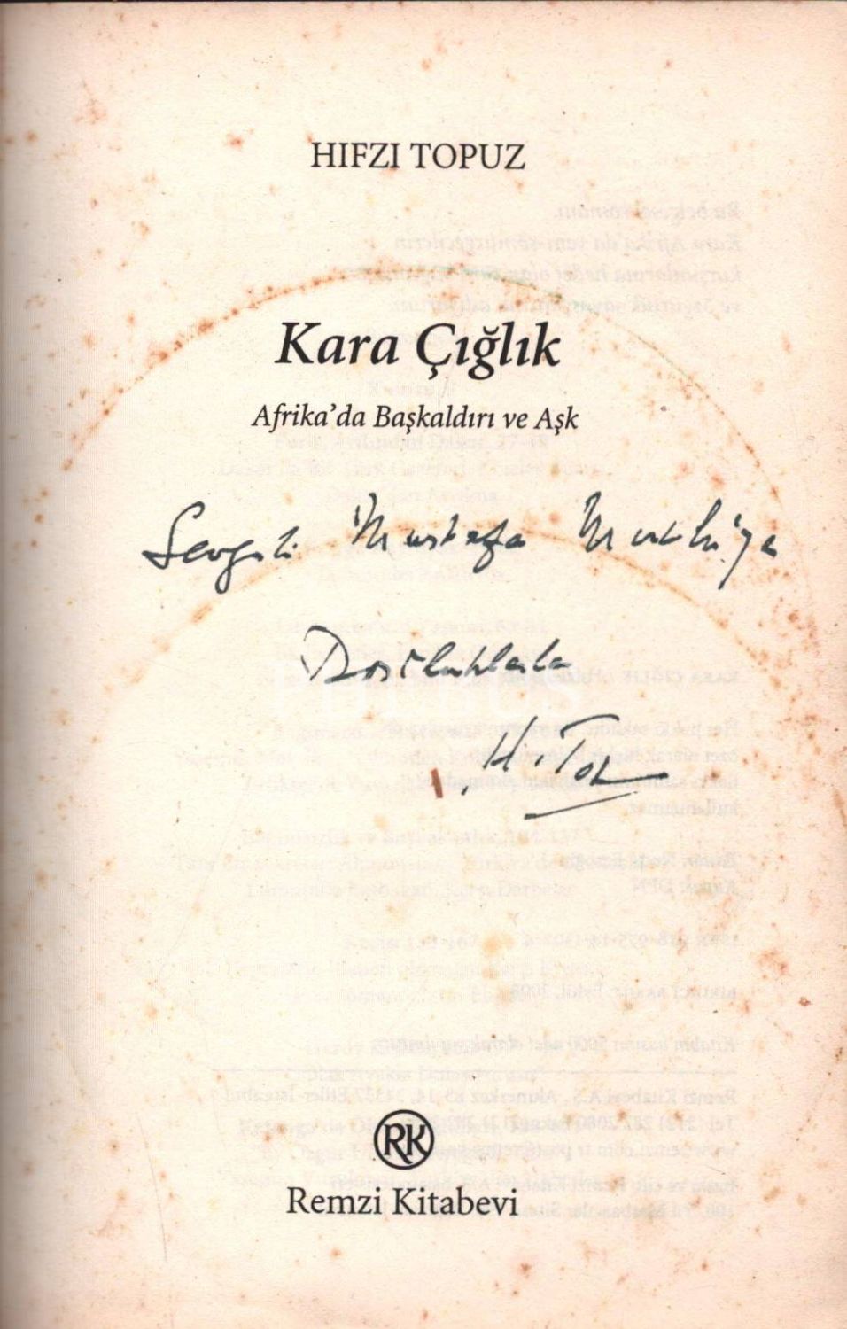 KARA ÇIĞLIK (AFRİKA´DA BAŞKALDIRI VE AŞK), 2008, Remzi Kitabevi, 228 sayfa, 14x20 cm, İTHAFLI VE İMZALI...
