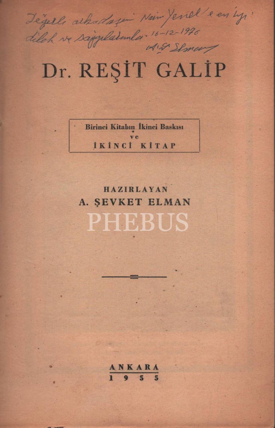 DR. REŞİT GALİP, A. Şevket Elman, 1955, Türkiye Matbaacılık ve Gazetecilik A. O., 438 sayfa, 17x24 cm, İTHAFLI VE İMZALI...