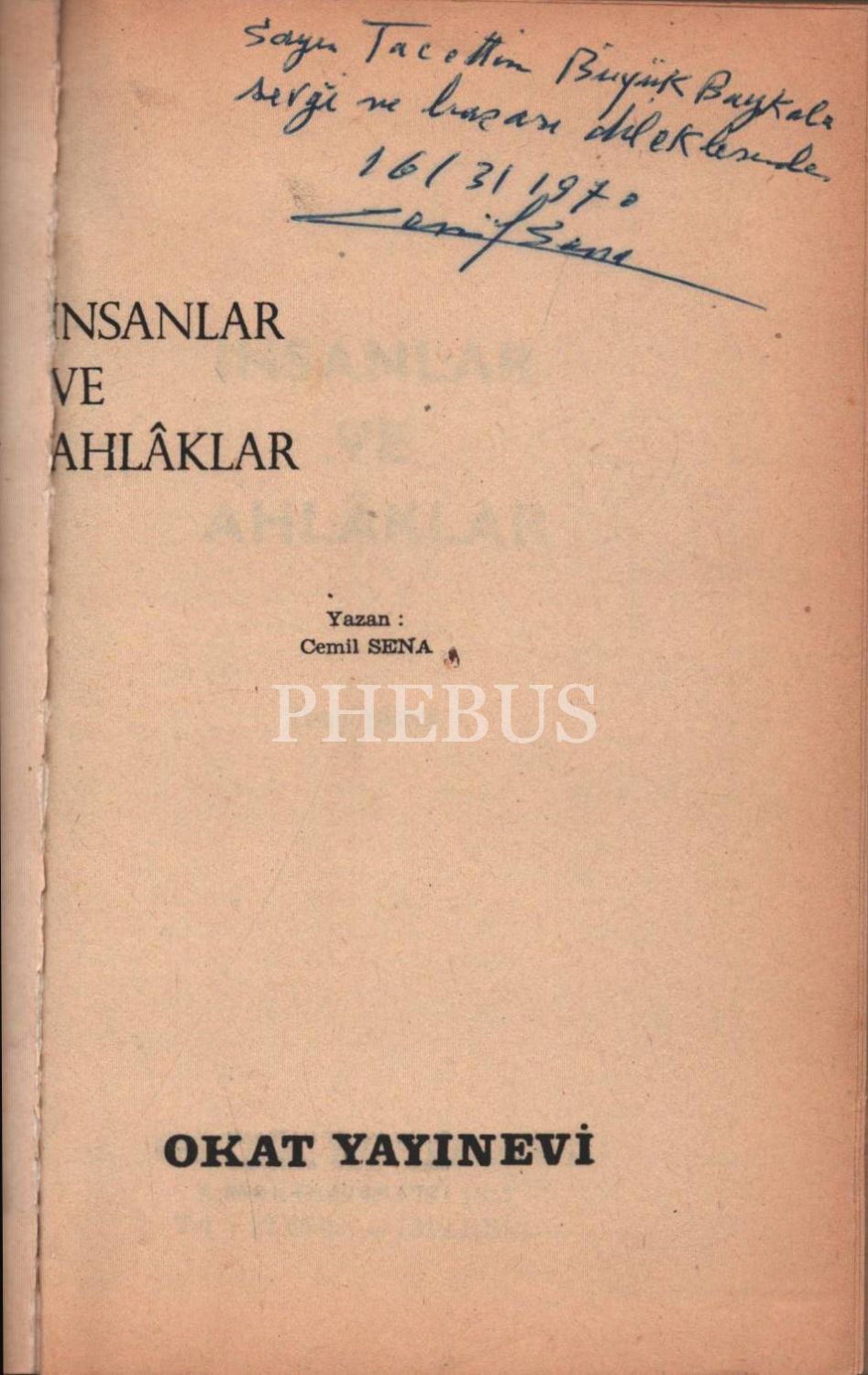 İNSANLAR VE AHLAKLAR, Cemil Sena, 1970, Okat Yayınevi, 284 sayfa, 14x20 cm, İTHAFLI VE İMZALI...