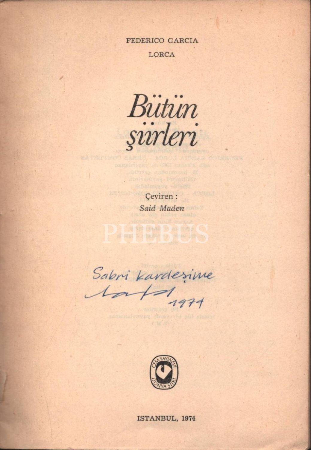 LORCA, Sait Maden, 1974, Cem Yayınevi, 565 sayfa, 14x20 cm, İTHAFLI VE İMZALI...