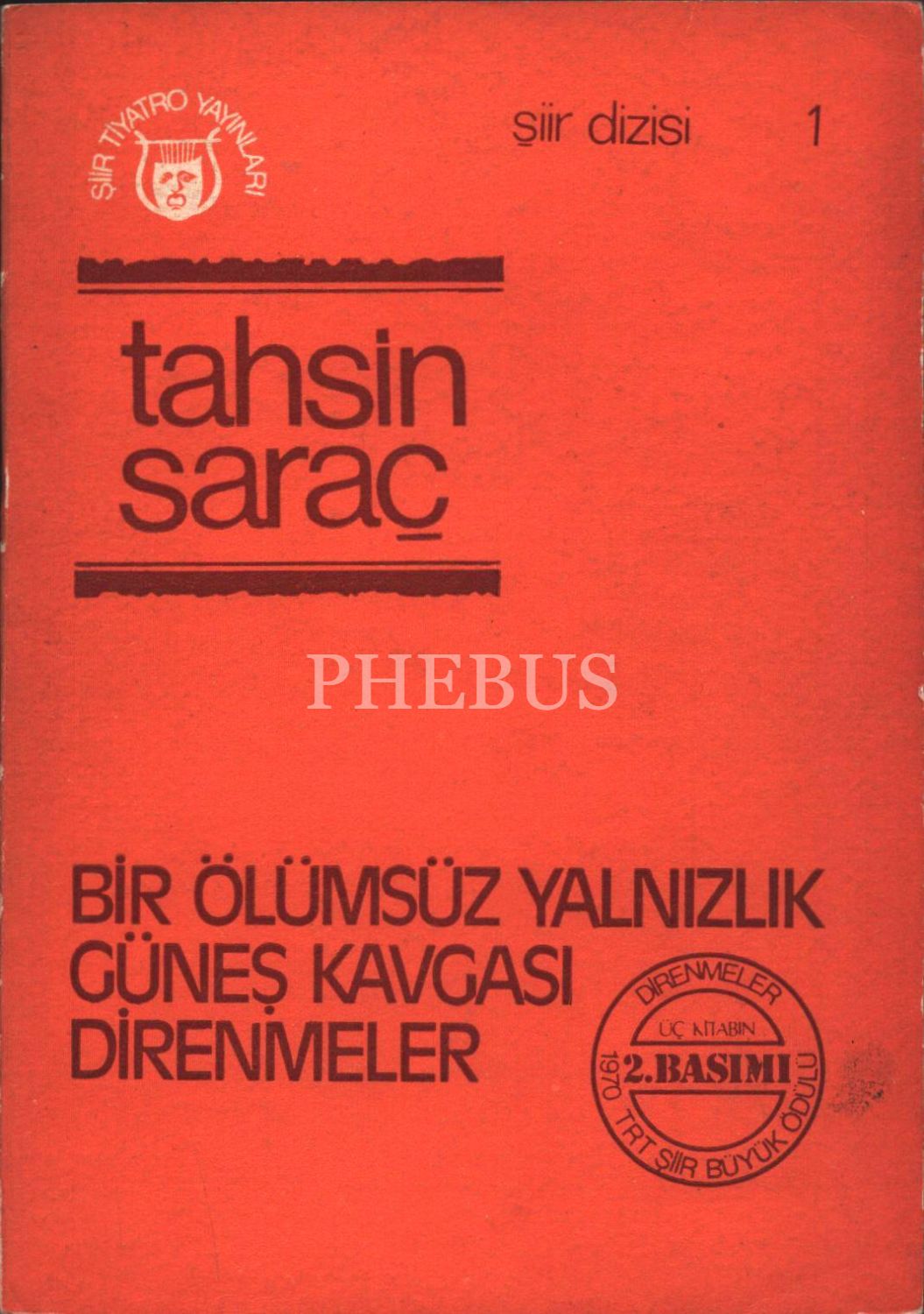 BİR ÖLÜMSÜZ YALNIZLIK, Tahsin Saraç, 1978, Şiir Tiyatro Yayınları, 159 sayfa, 14x20 cm, İTHAFLI VE İMZALI...