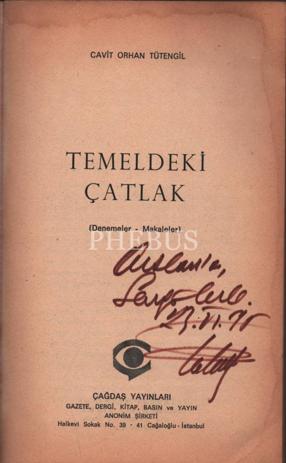 TEMELDEKİ ÇATLAK, Cavit Orhan Tütengil, 1975, Çağdaş Yayınları,235 sayfa, 12x20 cm, İTHAFLI VE İMZALI...