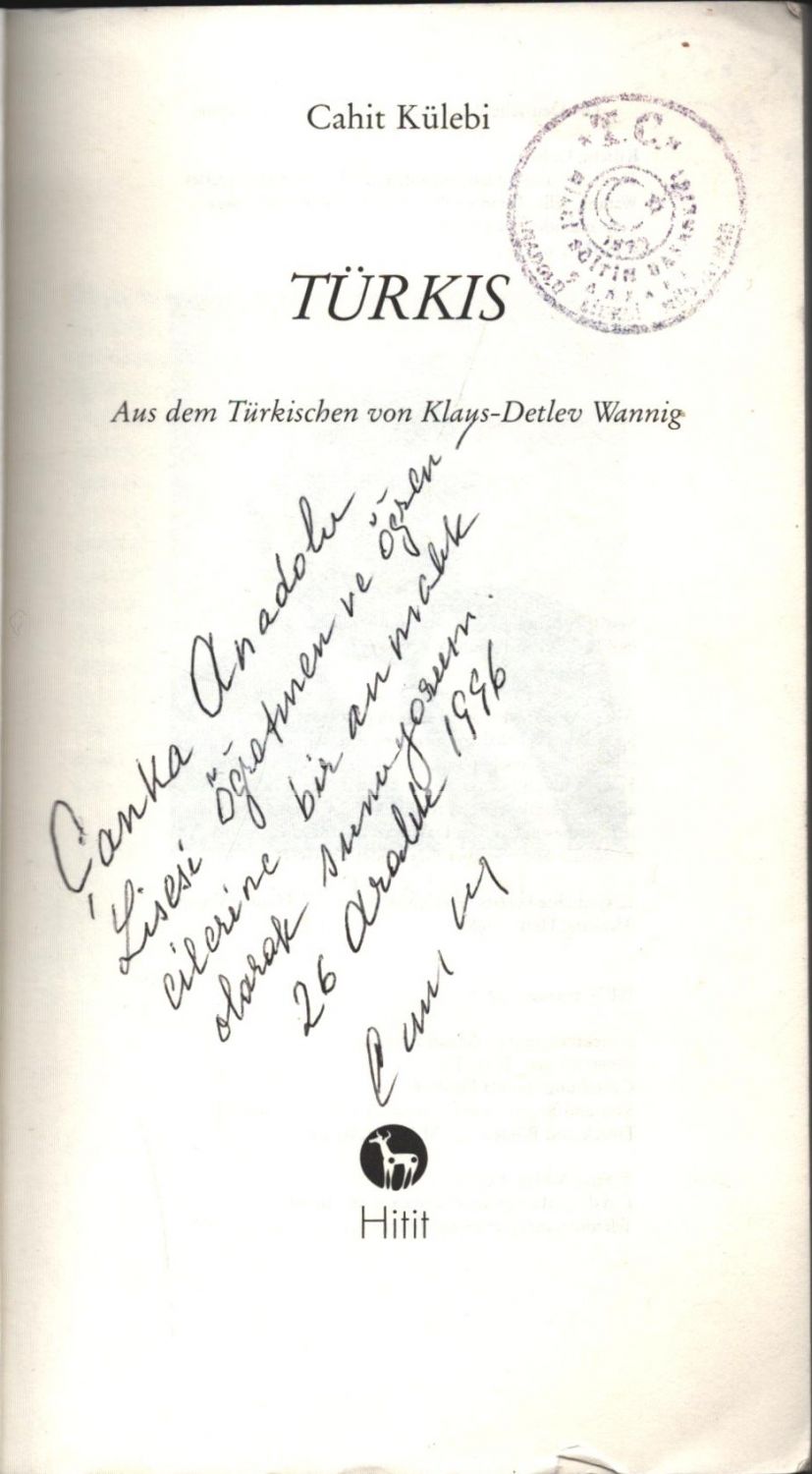 ALMANCA: TÜRK MAVİSİ - TÜRKIS, Cahit Külebi, 1994, Hitit Verlag, 205 sayfa, 13x22 cm, İTHAFLI VE İMZALI...