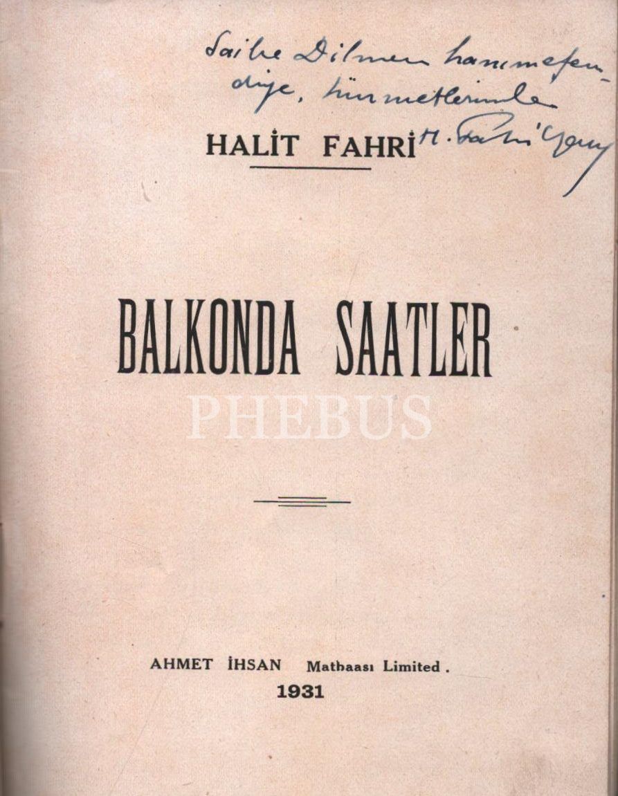 BALKONDA SAATLER, Halit Fahri, 1931, Ahmet İhsan Matbaası, 16 sayfa, 12x15 cm, İTHAFLI VE İMZALI...