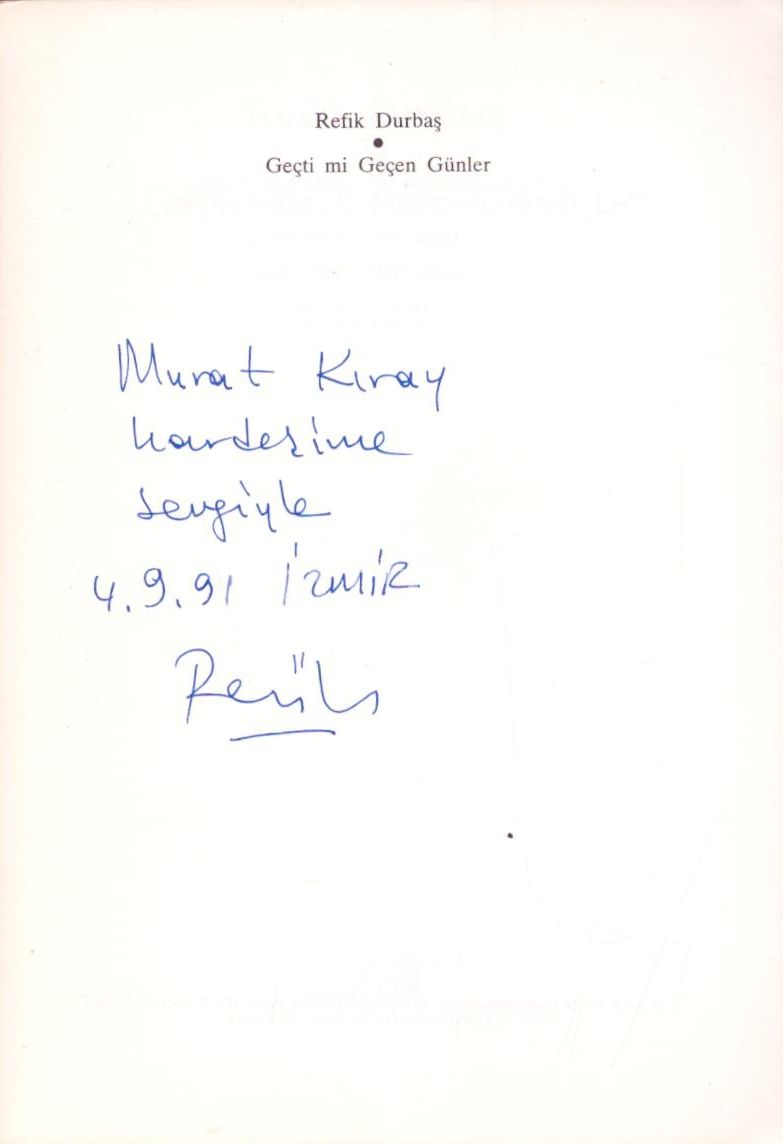 GEÇTİ Mİ GEÇEN GÜNLER, Refik Durbaş, 1989, Adam Yayınları, 77 sayfa, 14x20 cm, İTHAFLI VE İMZALI...
