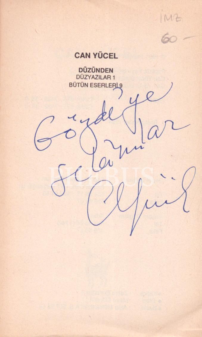DÜZÜNDEN (Düzyazılar-I), Can Yücel, 1991, Papirüs Yayınları, 342 sayfa, 12x19 cm, İTHAFLI VE İMZALI...