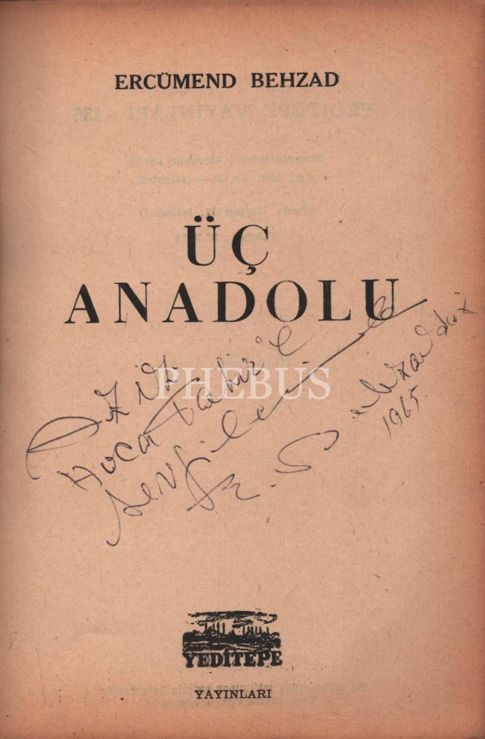 ÜÇ ANADOLU, Ercümend Behzad, 1964, Yeditepe Yayınları, 74 sayfa, 13x19 cm, İTHAFLI VE İMZALI...