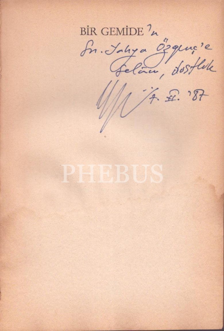 İthaf, " Bir Gemide´n Sn. Yahya Özgenç´e selam, dostluk 7.VI.´87" şeklindedir.