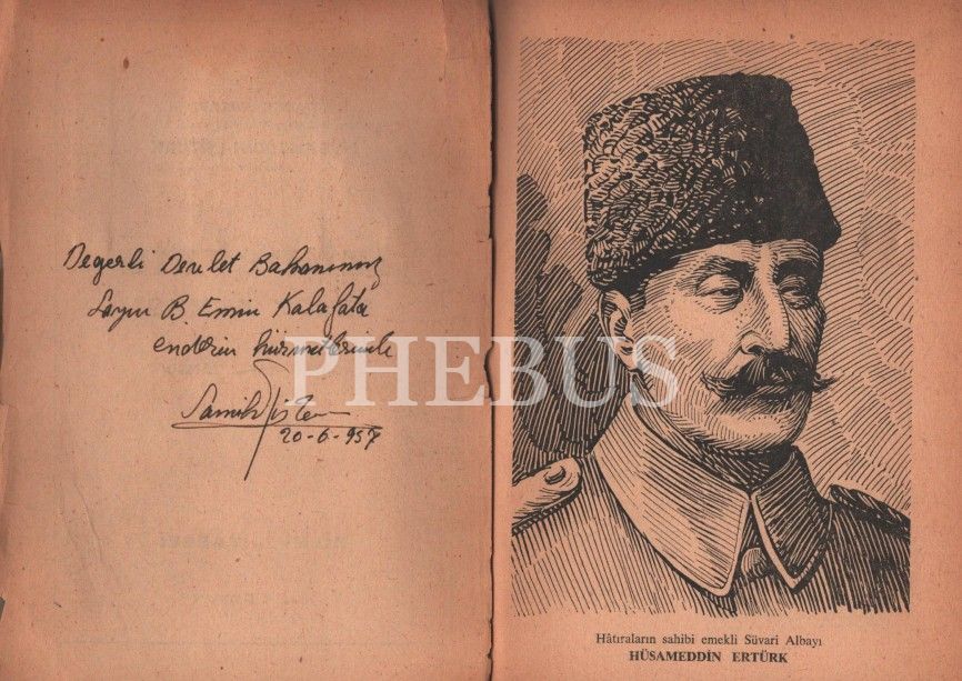 İthaf, " Değerli Devlet Bakanımız Sayın B. Emin Kalafat´a en derin hürmetlerimle 20-6-957" şeklindedir.