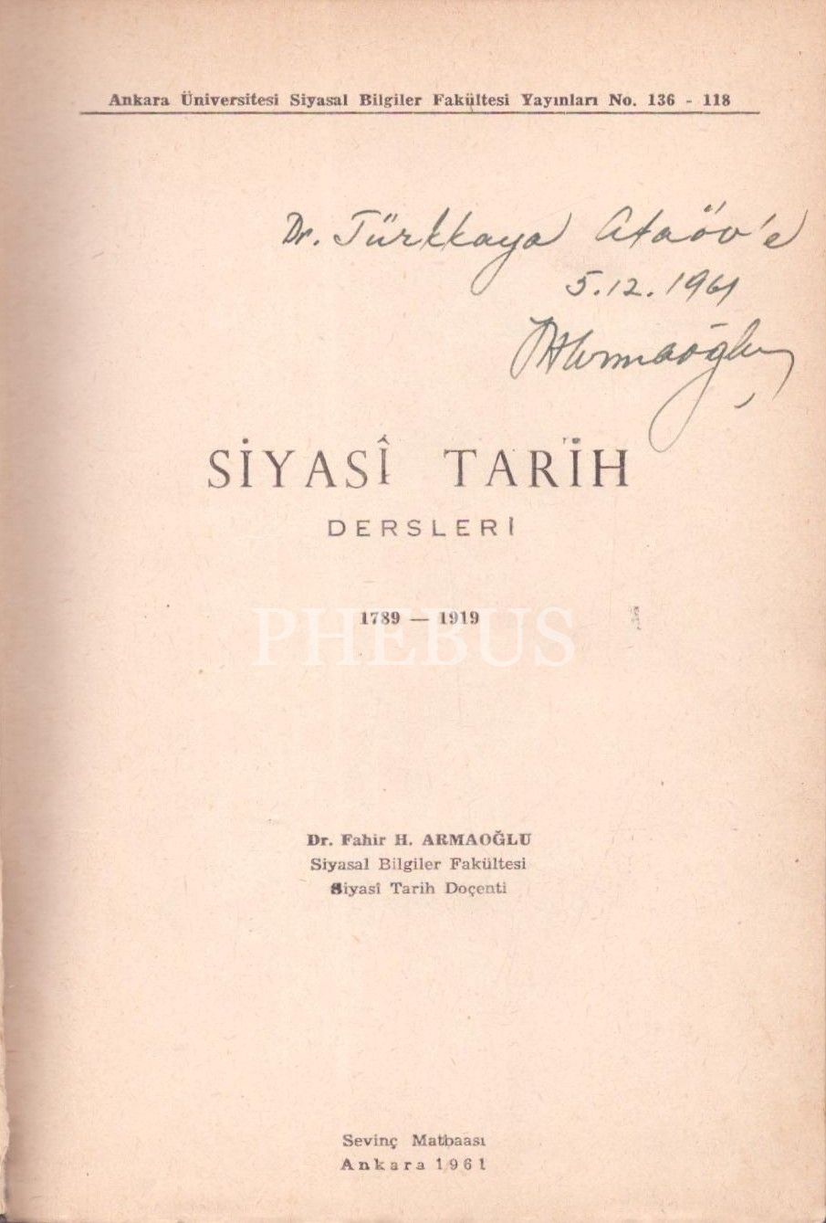 SİYASİ TARİH DERSLERİ, Fahir H. Armaoğlu, 1961, Sevinç Matbaası,661 sayfa, 16x24 cm, İTHAFLI VE İMZALI...
