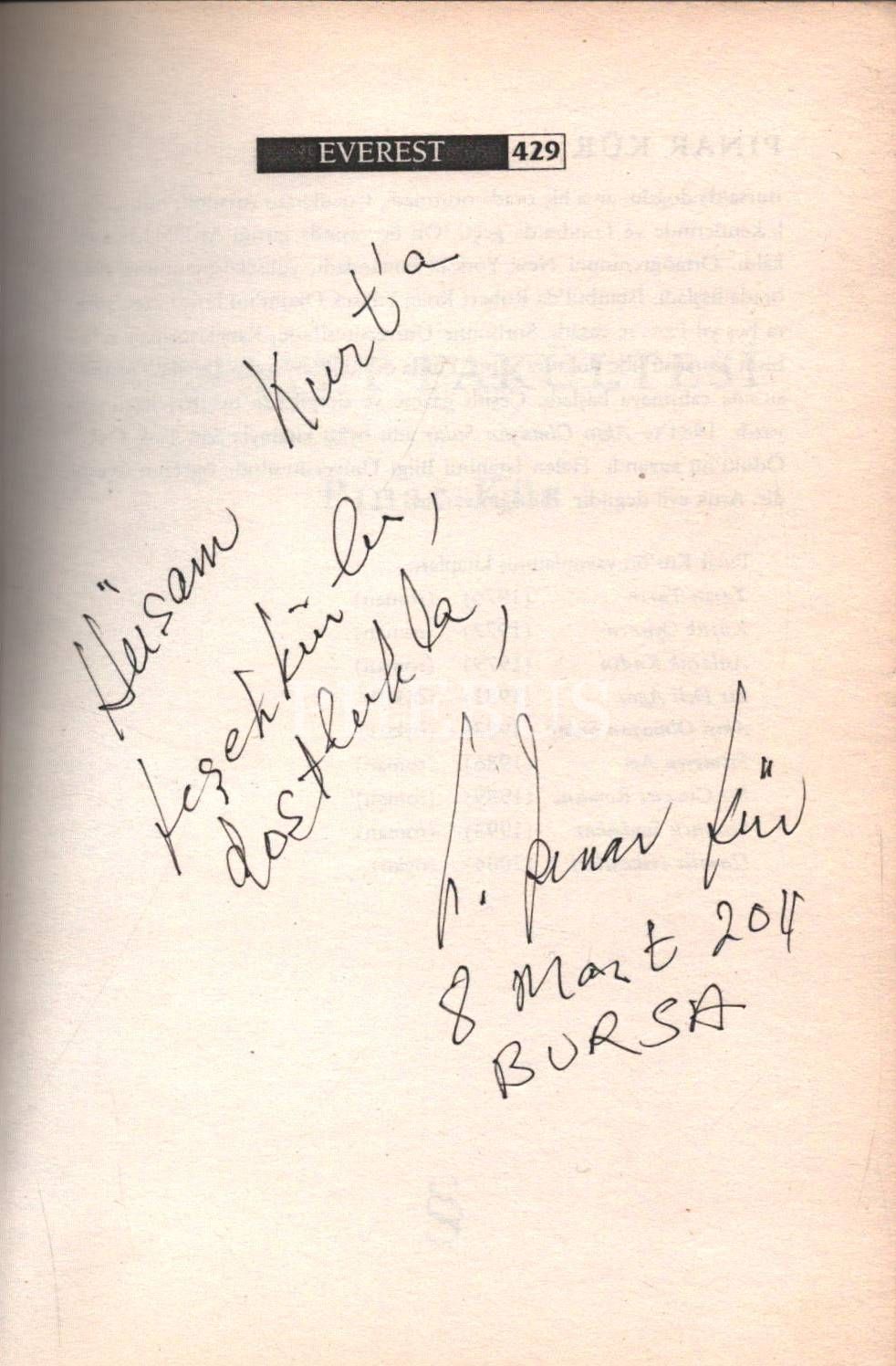 İthaf, " Hüsam Kurt´a teşekkürler, dostlukla, 8 Mart 2011 Bursa" şeklindedir.