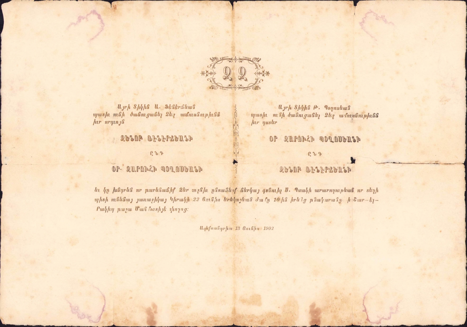 Ermenice 1902 tarihli davetiye, haliyle, 33x23 cm