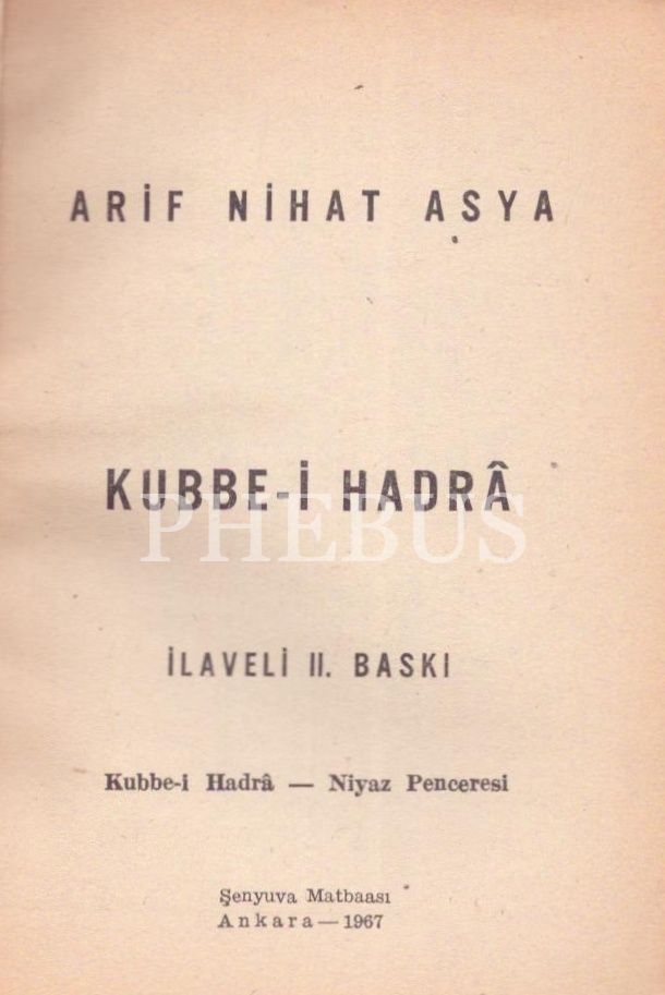 KUBBE-İ HADRA, Arif Nihat Asya, 1967, Defne Yayınları, 144 sayfa, 12x16 cm, İTHAFLI VE İMZALI...