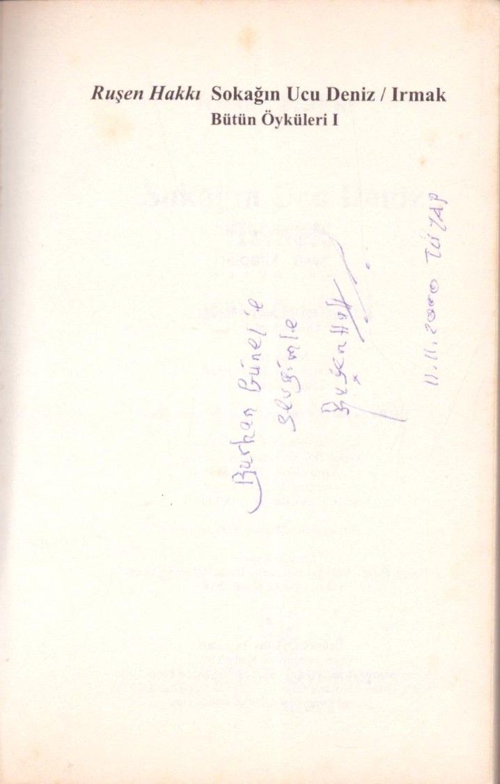 SOKAĞIN UCU DENİZ/IRMAK, Ruşen Hakkı, 2000, Üçüncü Öyküler Yayınevi, 220 sayfa, 13x19 cm, İTHAFLI VE İMZALI...