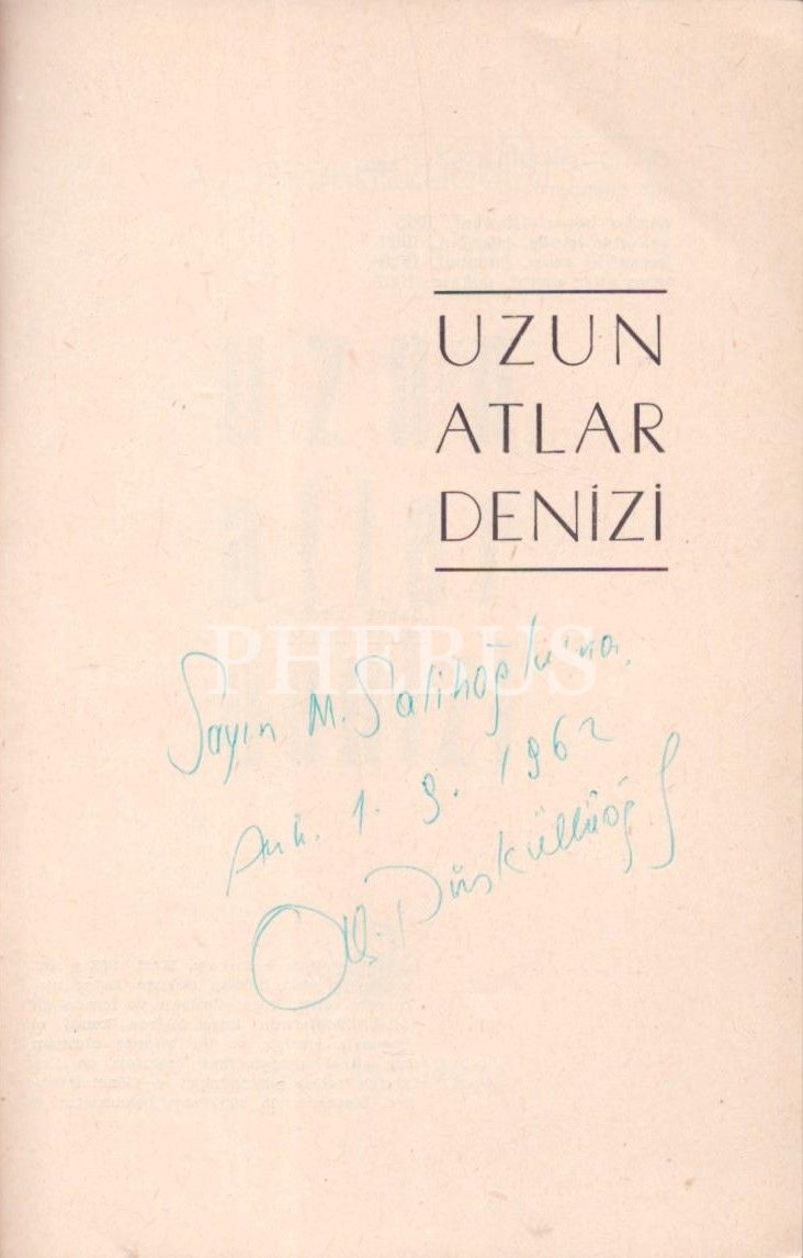 UZUN ATLAR DENİZİ, Ali Püsküllüoğlu, 1962, Gim Yayınları, 45 sayfa, 13x20 cm, İTHAFLI VE İMZALI...