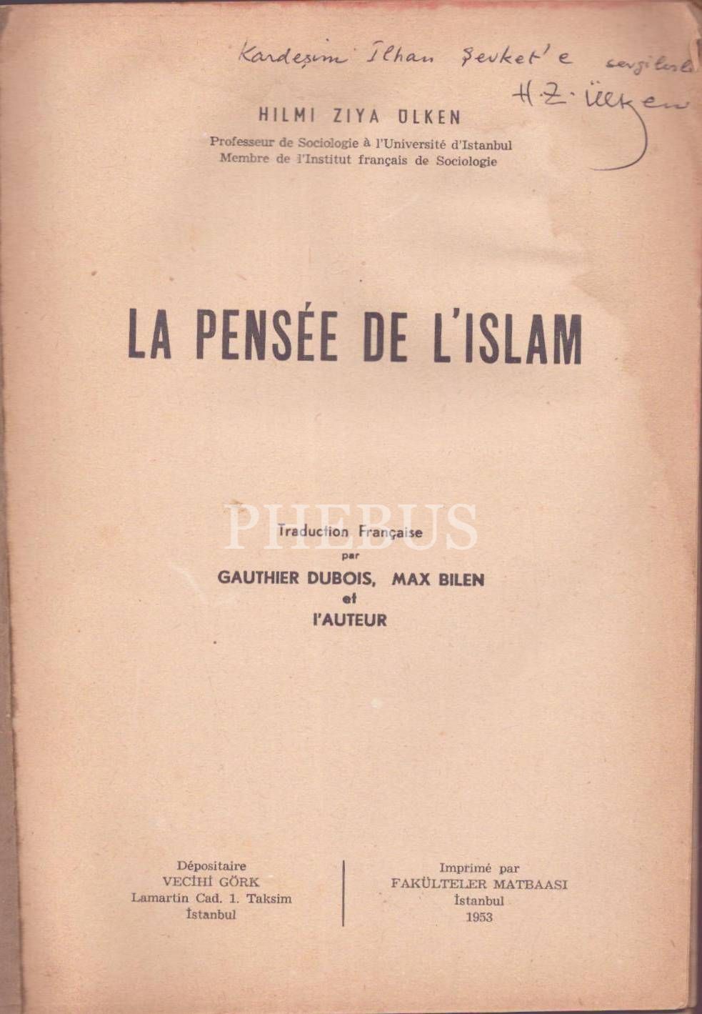 LA PENSEE DE L´ISLAM, Hilmi Ziya Ülken, 1953, Fakülteler Matbaası, 656 sayfa, 17x24 cm, İTHAFLI VE İMZALI...