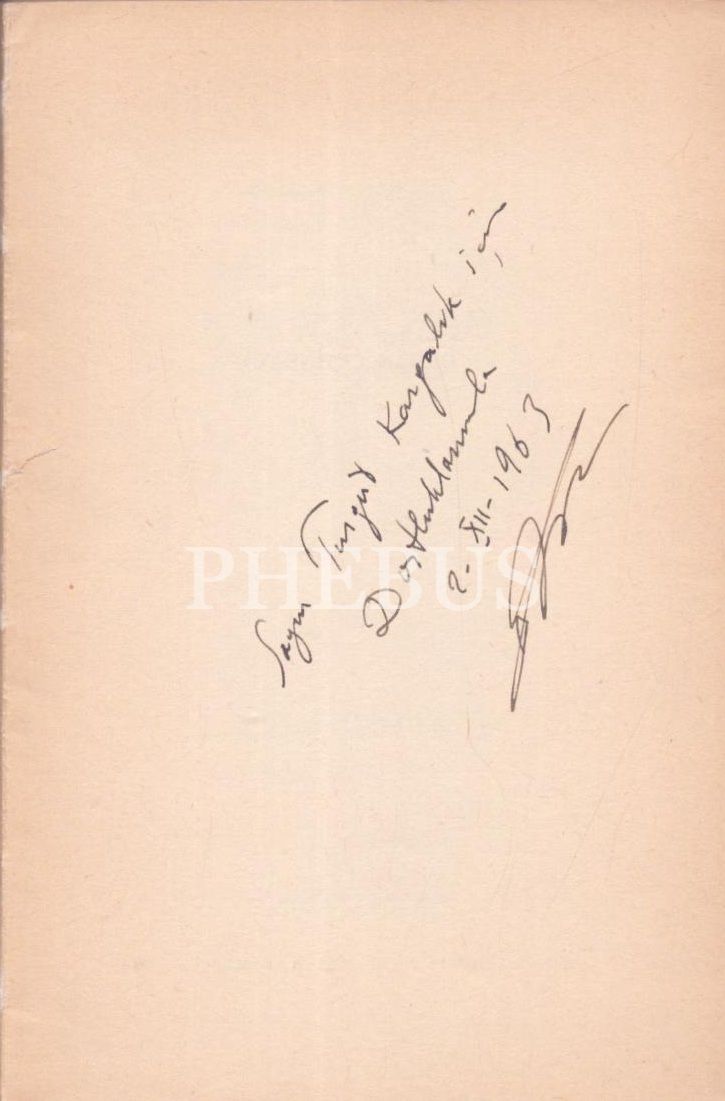 İthaf, " Sayın Turgut Kargalık için dostluklarımla 2.XII.1963" şeklindedir.
