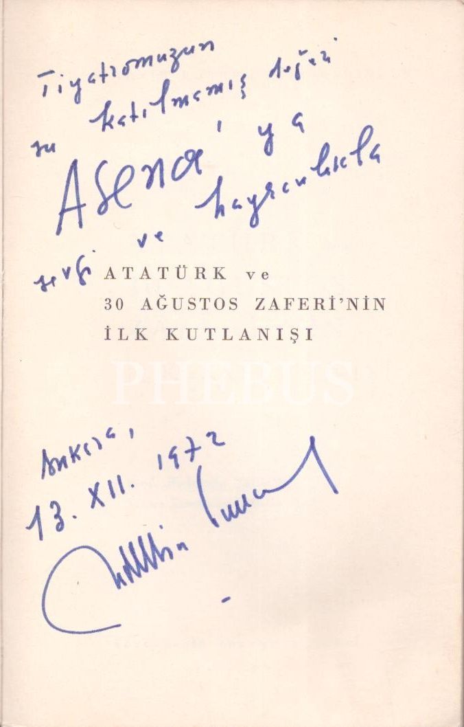 ATATÜRK VE 30 AĞUSTOS ZAFERİNİN İLK KUTLANIŞI, Bedrettin Tuncel, 1972, Türk Tarih Kurumu Basımevi, 92 sayfa, 12x18 cm, İTHAFLI VE İMZALI...