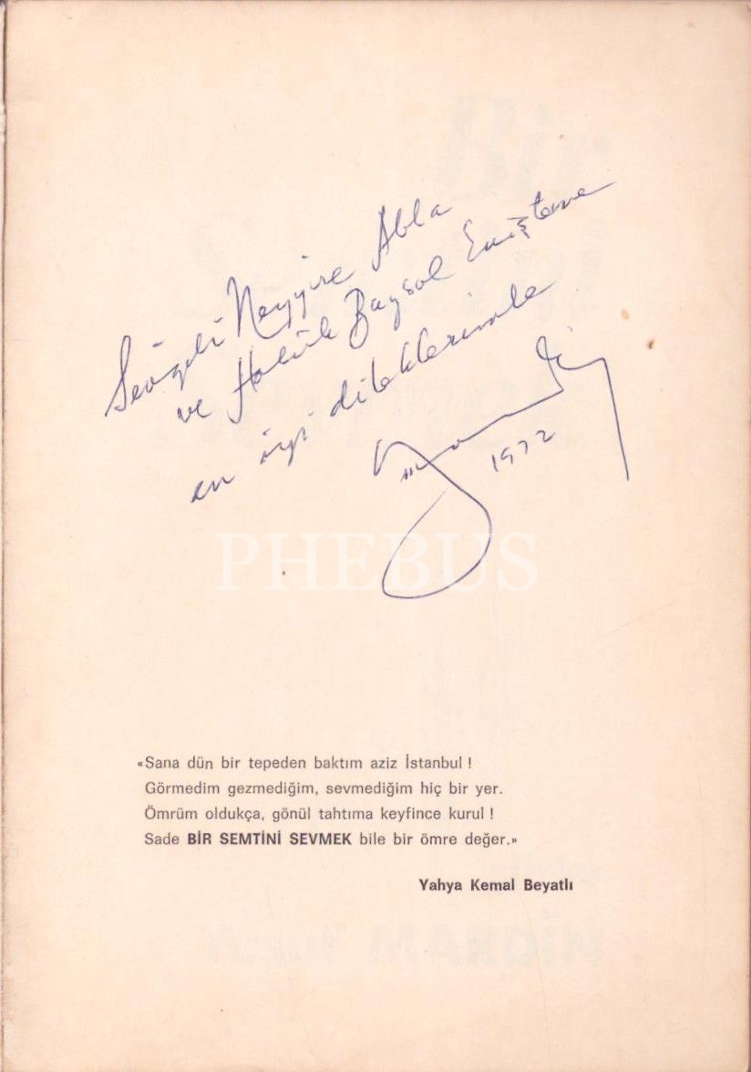 BİR SEMTİNİ SEVMEK, Yusuf Mardin, 1972, Ajans-Türk Matbaacılık, 80 sayfa, 14x20 cm, İTHAFLI VE İMZALI...