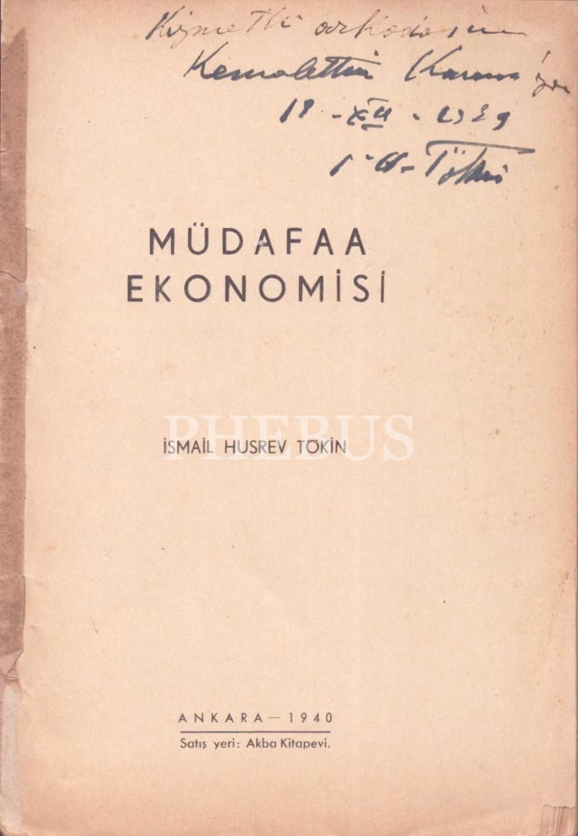 MÜDAFAA EKONOMİSİ, İsmail Hüsrev Tokin, 1940, Akba Kitapevi, 92 sayfa, 14x20 cm, İTHAFLI VE İMZALI...