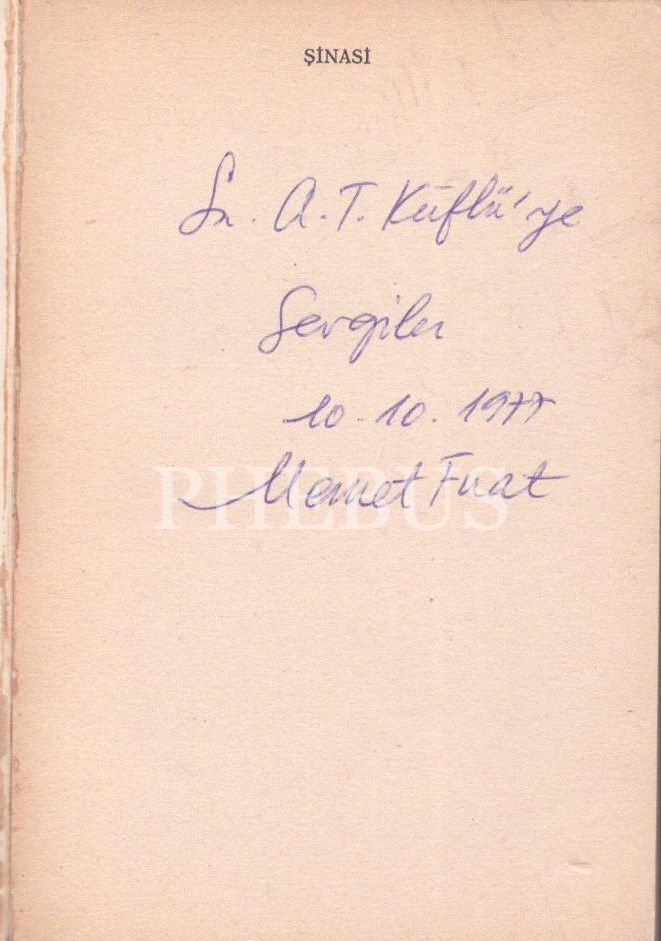 ŞİNASİ, Memet Fuat, 1977, De Yayınevi, 142 sayfa, 11x17 cm, İTHAFLI VE İMZALI...