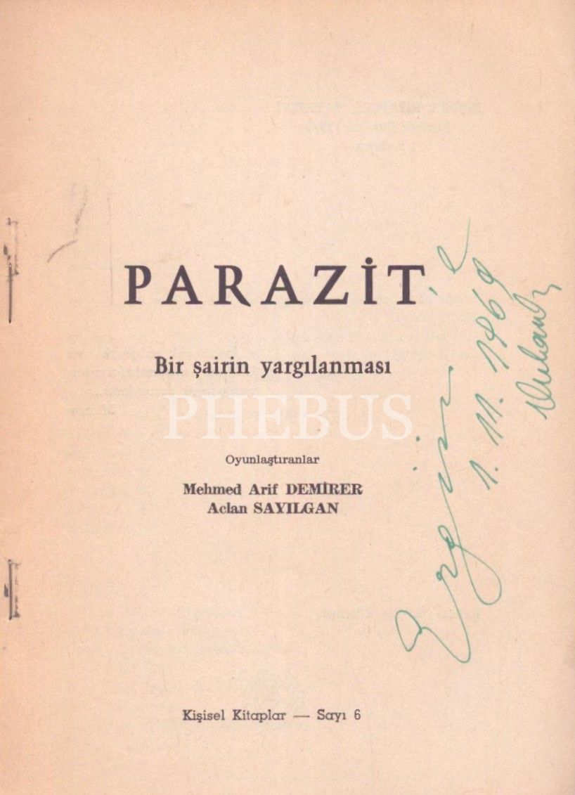 PARAZİT, Mehmet Arif Demirer & Aclan Sayılgan, 1966, Ayyıldız Matbaası, 14x20 cm, İTHAFLI VE İMZALI...