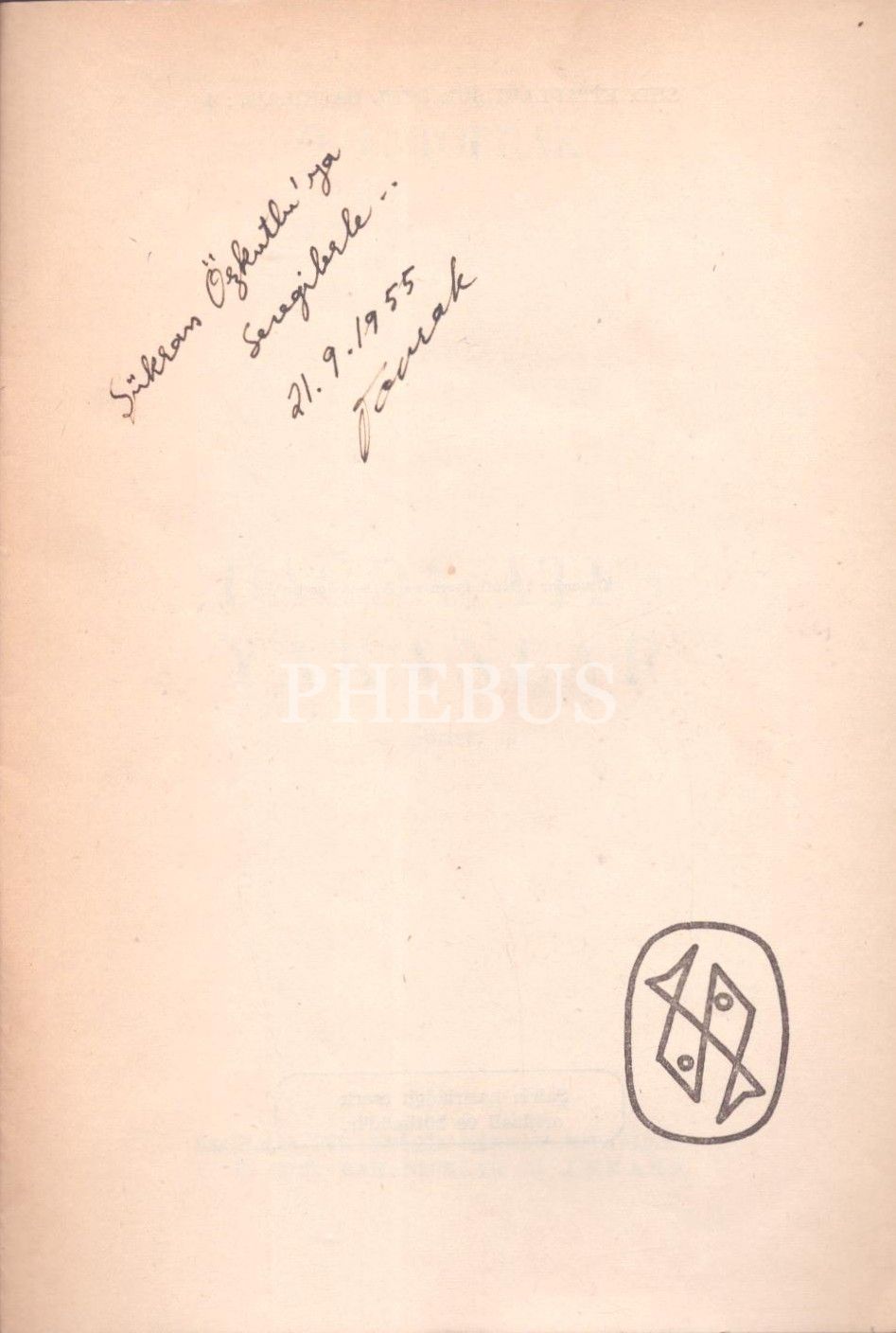 İthaf, " Şükran Özkutlu´ya sevgilerle... 21.9.1955" şeklindedir.