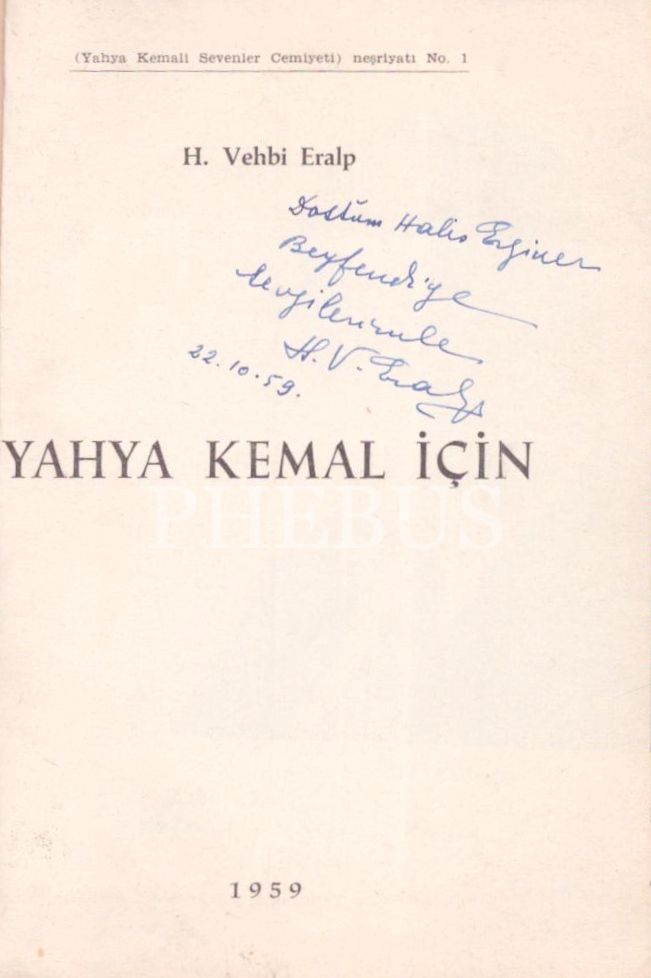 YAHYA KEMAL İÇİN, H. Vehbi Eralp, 1959, Doğan Kardeş Yayınları, 95 sayfa, 13x18 cm, İTHAFLI VE İMZALI...