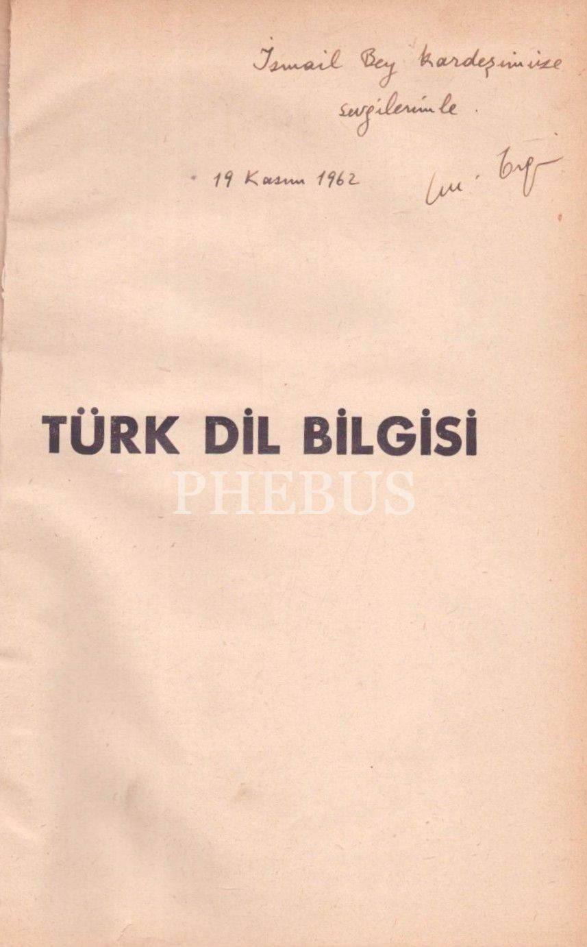 TÜRK DİL BİLGİSİ, Muharrem Ergin, 1962, İstanbul Üniversitesi Edebiyat Fakültesi Yayınları, 384 sayfa, 17x25 cm, İTHAFLI VE İMZALI...