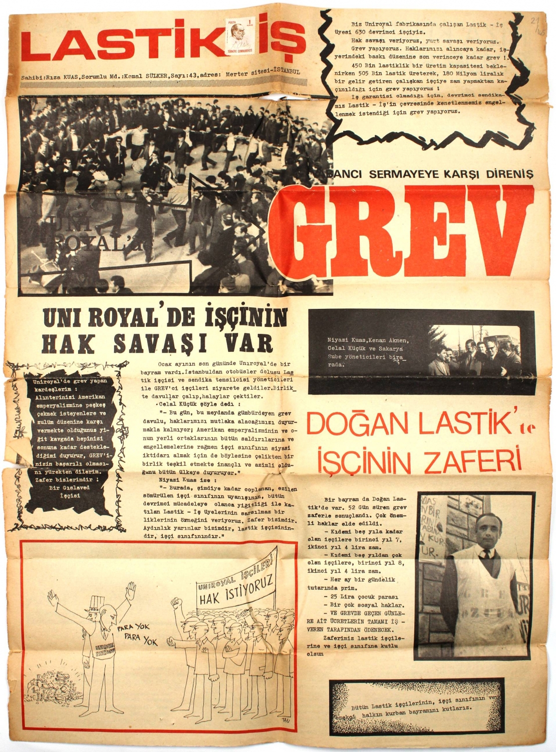 Uniroyal fabrikası çalışanları Lastik - iş üyesi 630 devrimci işçinin grev propagandası, 41x56 cm