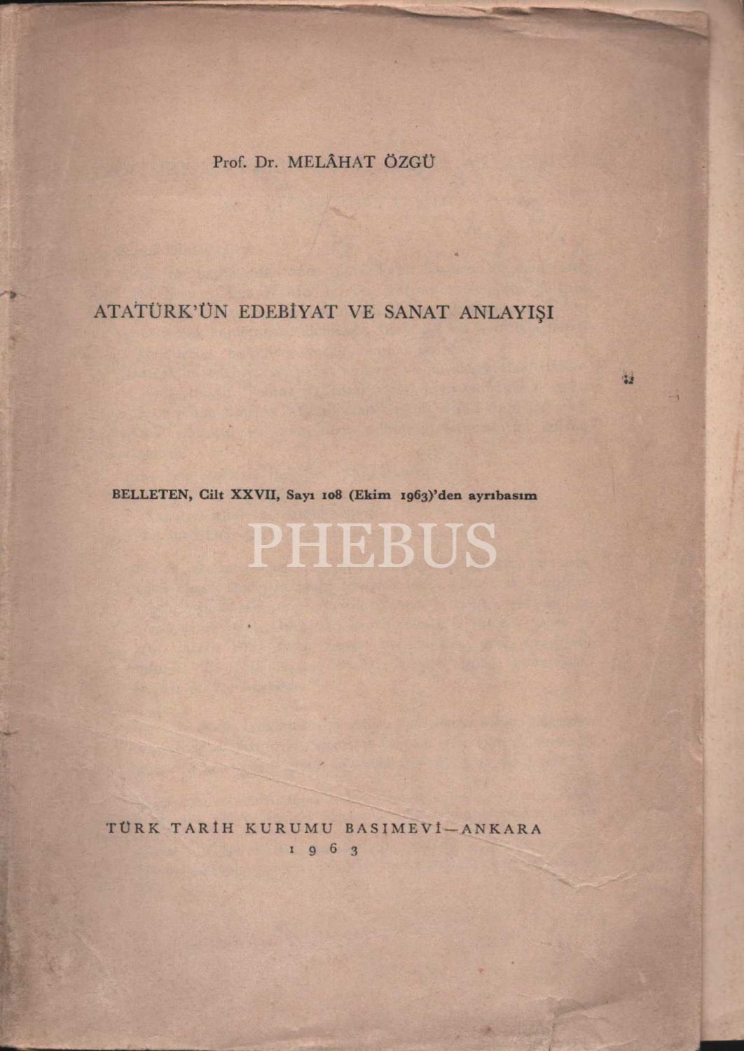 ATATÜRK´ÜN EDEBİYAT VE SANAT ANLAYIŞI, Melahat Özgü, 1963, Türk Tarih Kurumu Basımevi, 35 sayfa,17x24 cm, İTHAFLI VE İMZALI...