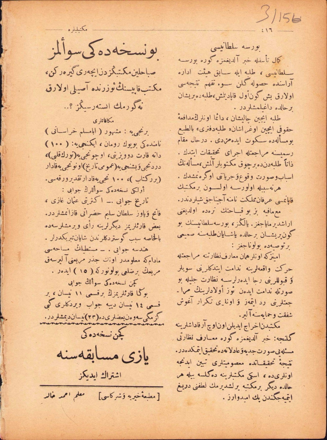 Osmanlıca Talebe Defteri mecmuası, Matbaa-i Hayriye ve Şürekası, sırtı haliyle, 20 sayfa, 16x24 cm