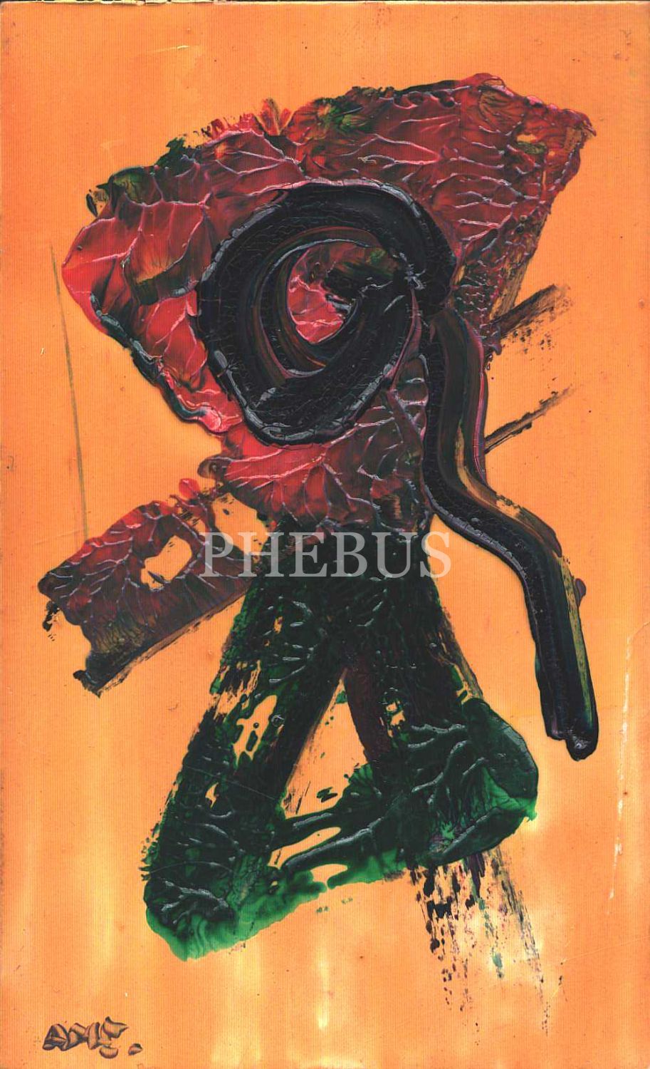 Şair ve ressam Metin Eloğlu´nun Mehmet Metin, Mehmet Emin, Ali Haziranlı, Etem Olgunil ve Nil Meteoğlu imzalarından birini kaleme alarak yapmış olduğu karışık teknik yağlıboya çalışması, 8x14 cm