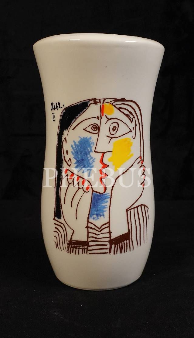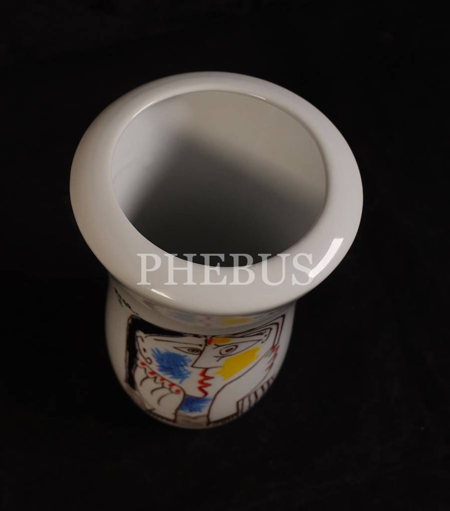 Lisanslı [Pablo] Picasso "Téte Appuyée sur les Mains II 1962" konulu porselen vazo, 10x19 cm