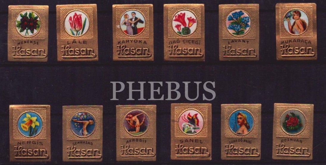Hasan Itriyat Deposu 2x2,5 cm ölçülerinde Oniki Çeşit Avrupa Gofre Taş Baskı Kolonya Etiketleri