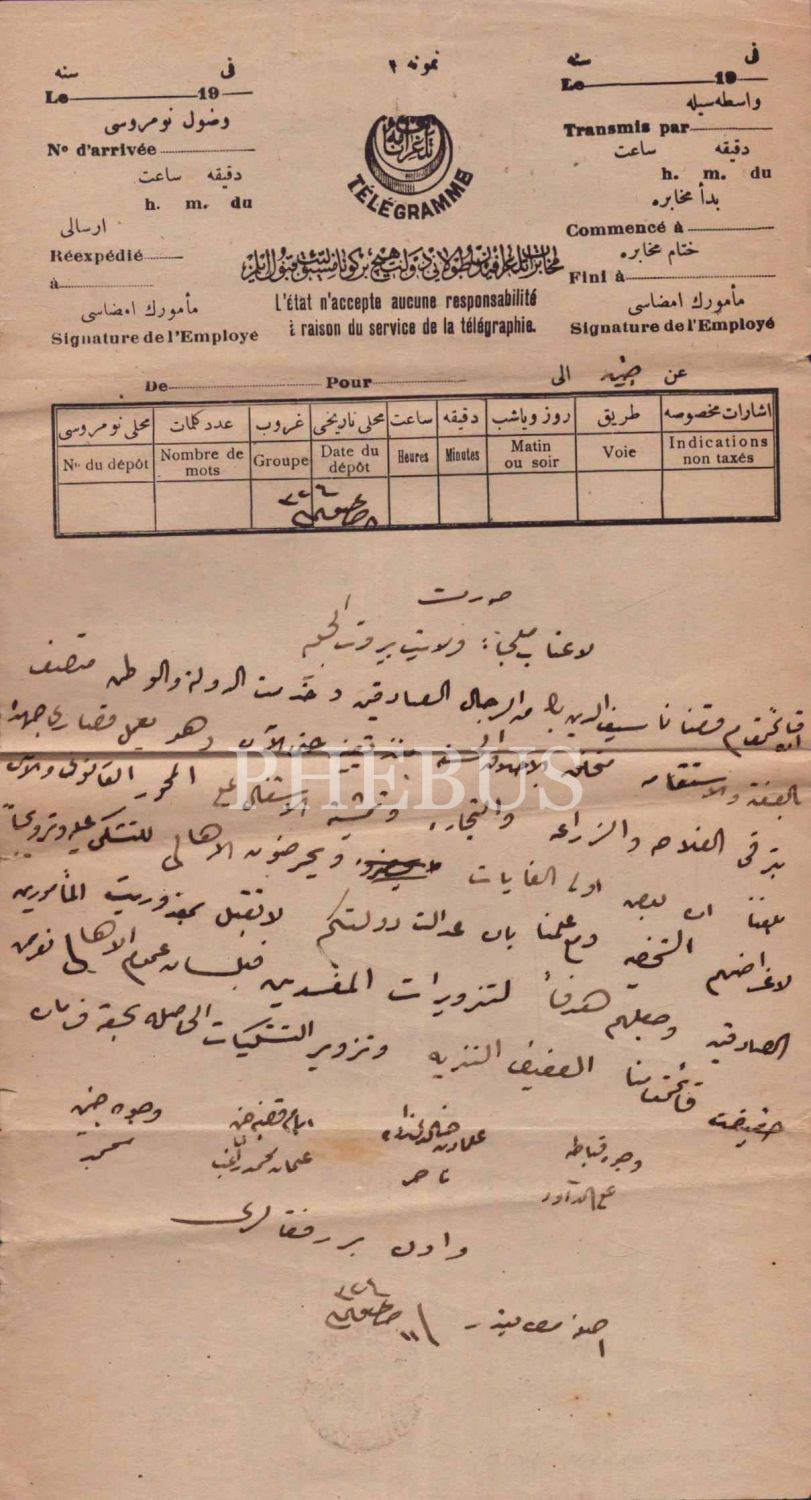 Cenin Kaymakamlığından Beyrut Mutasarrıflığına gönderilen Meşrutiyetin İlan edilmesine rağmen Cenin Kaymakamının Baskıcı İdareye devam etmesi konulu 8 Ağustos 1324 (1908) tarihli şikayet Telgrafı