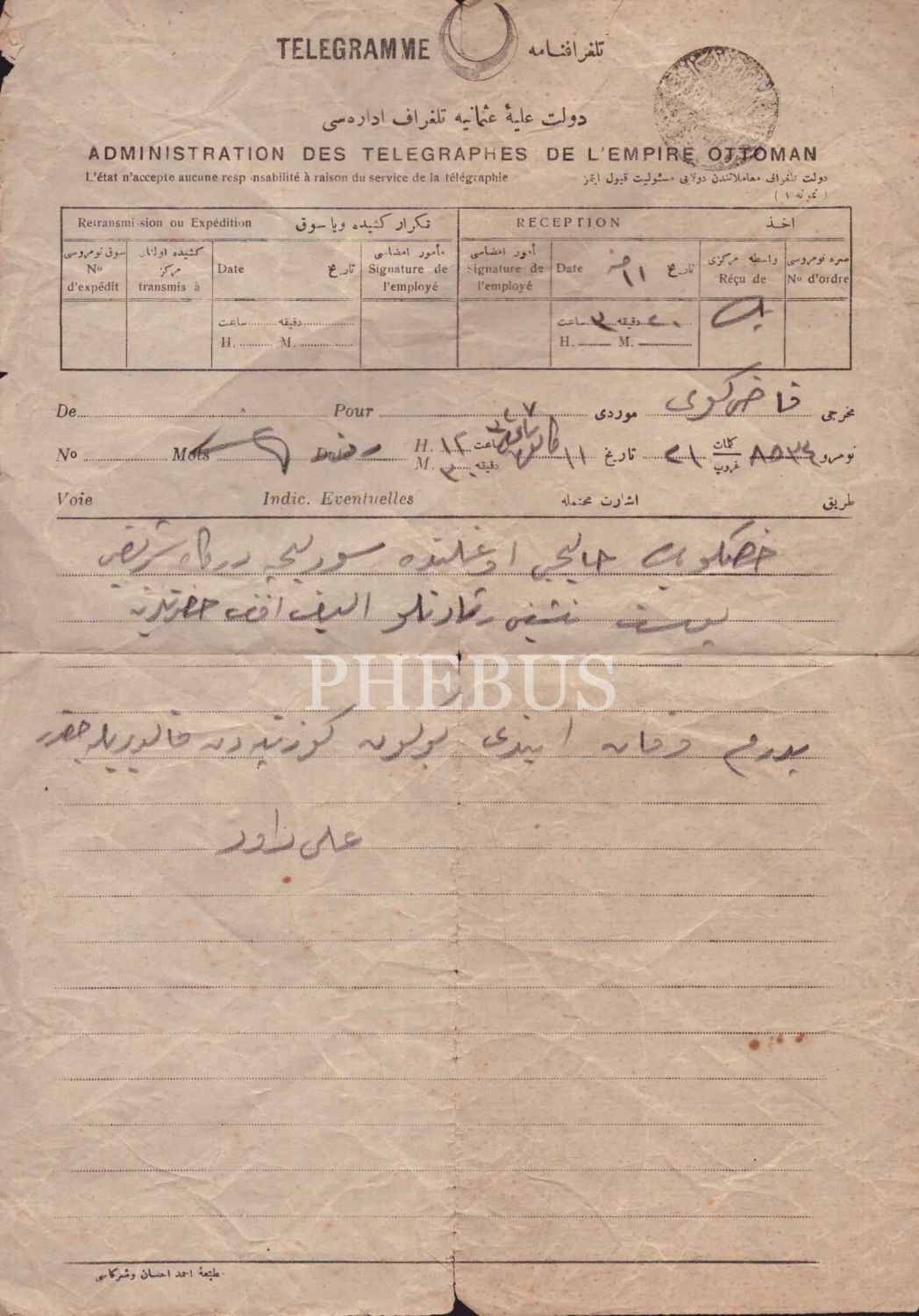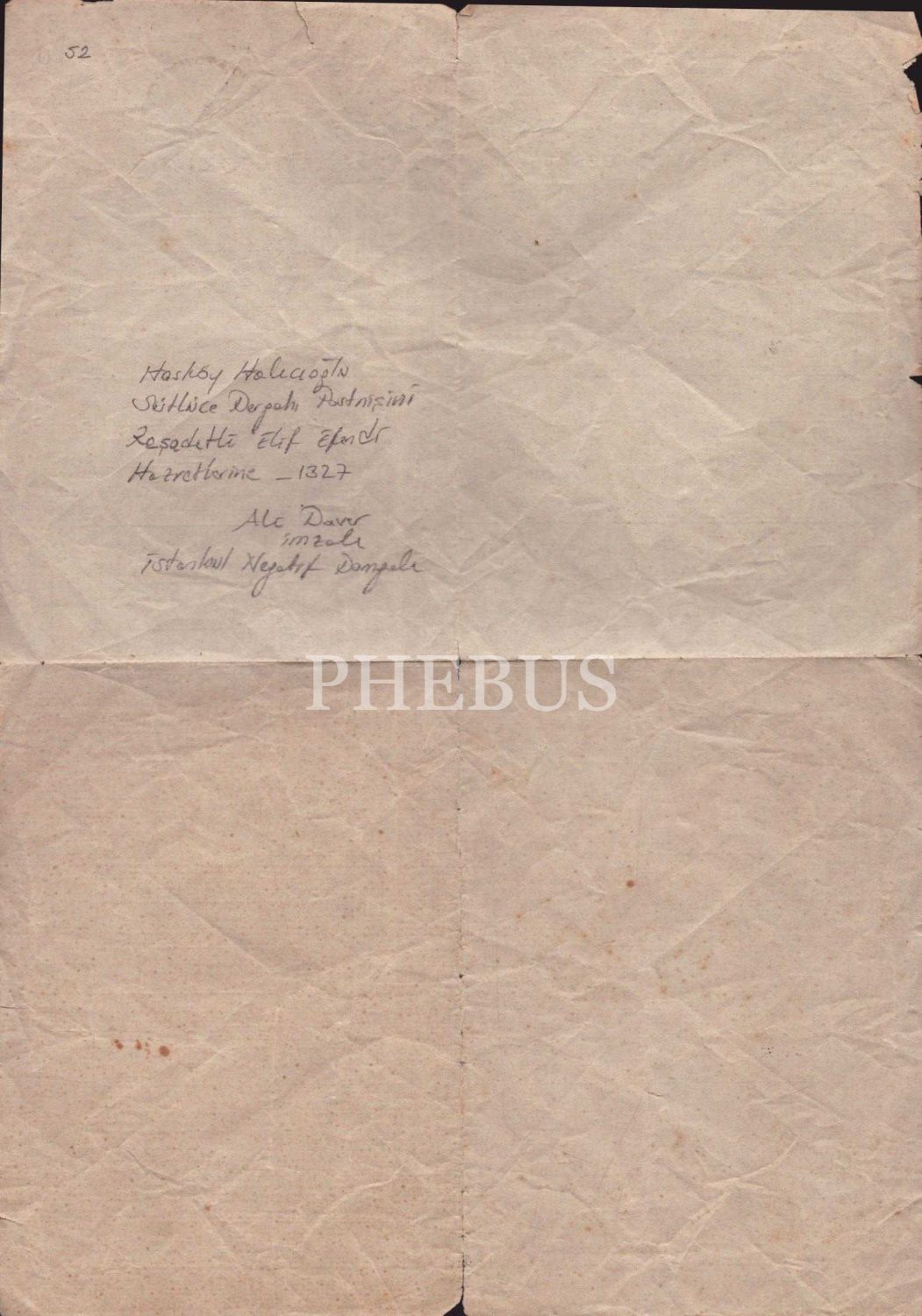 Hasköy Halıcıoğlu Sütlüce Dergahı Postnişini Reşadetlü Elif Efendi Hazretlerine Hitabıyla gönderilen 1911 Tarihli Negatif İstanbul Postahanesi Damgalı Telgraf