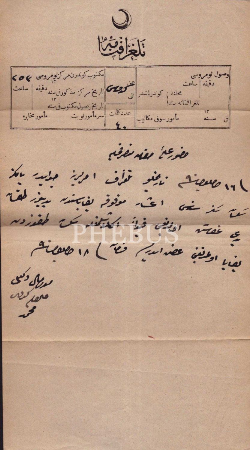 Gediz Kazasında Aşar Vergilerinin toplanması konulu 1872 Tarihli erken dönem Telgraf