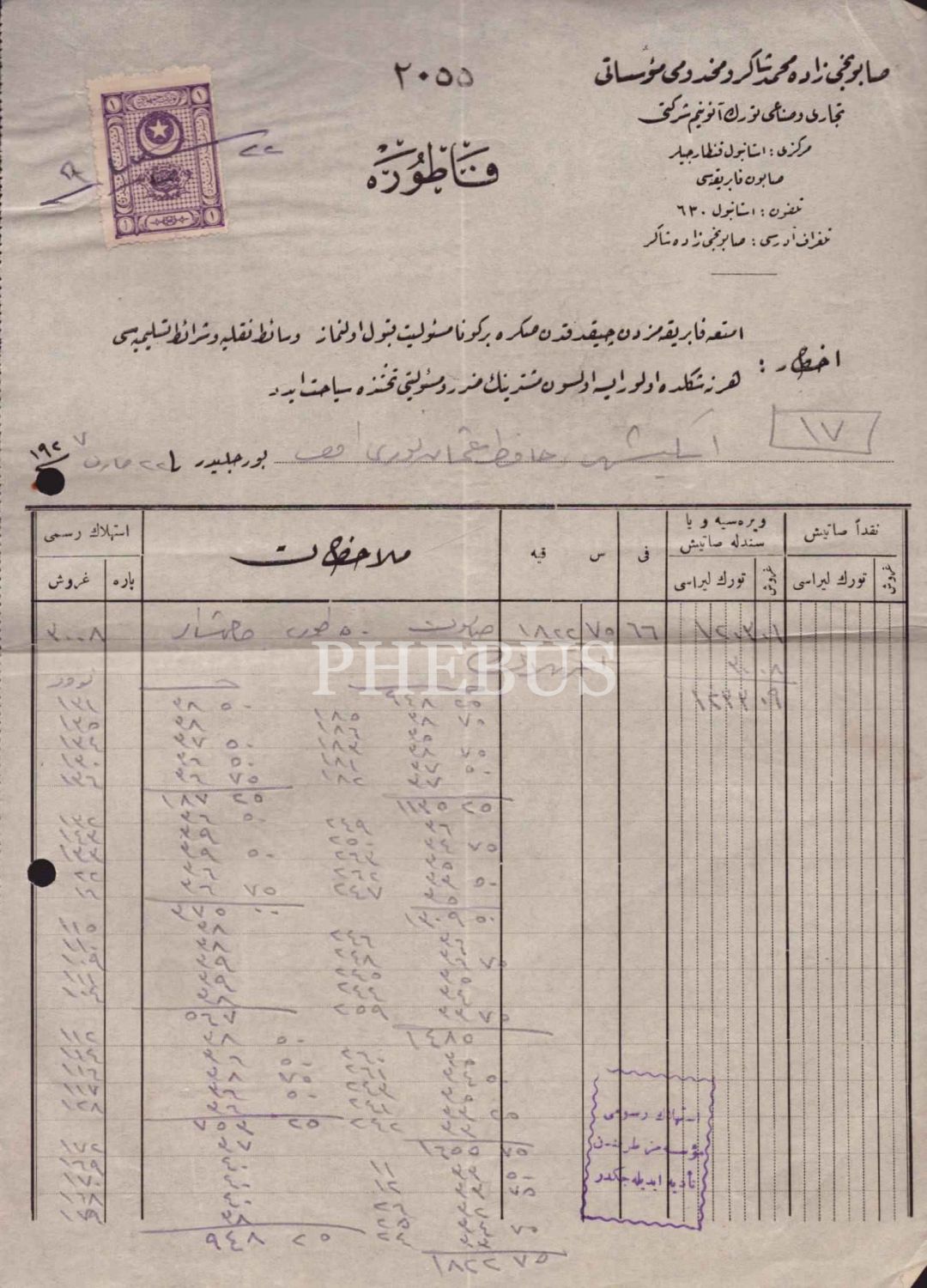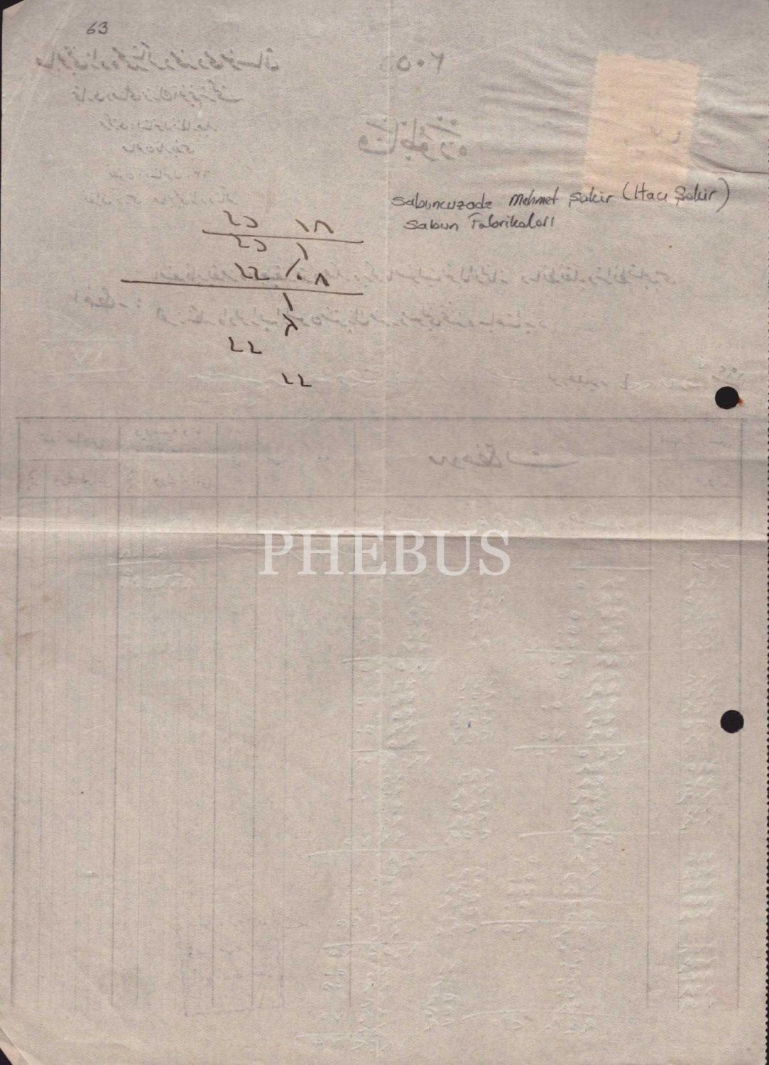 Sabuncuzade Mehmet Şakir (Hacı Şakir) Sabun Fabrikaları Antetli 1927 tarihli Fatura