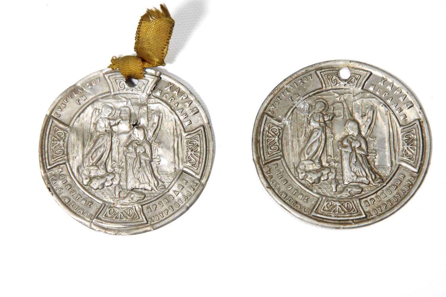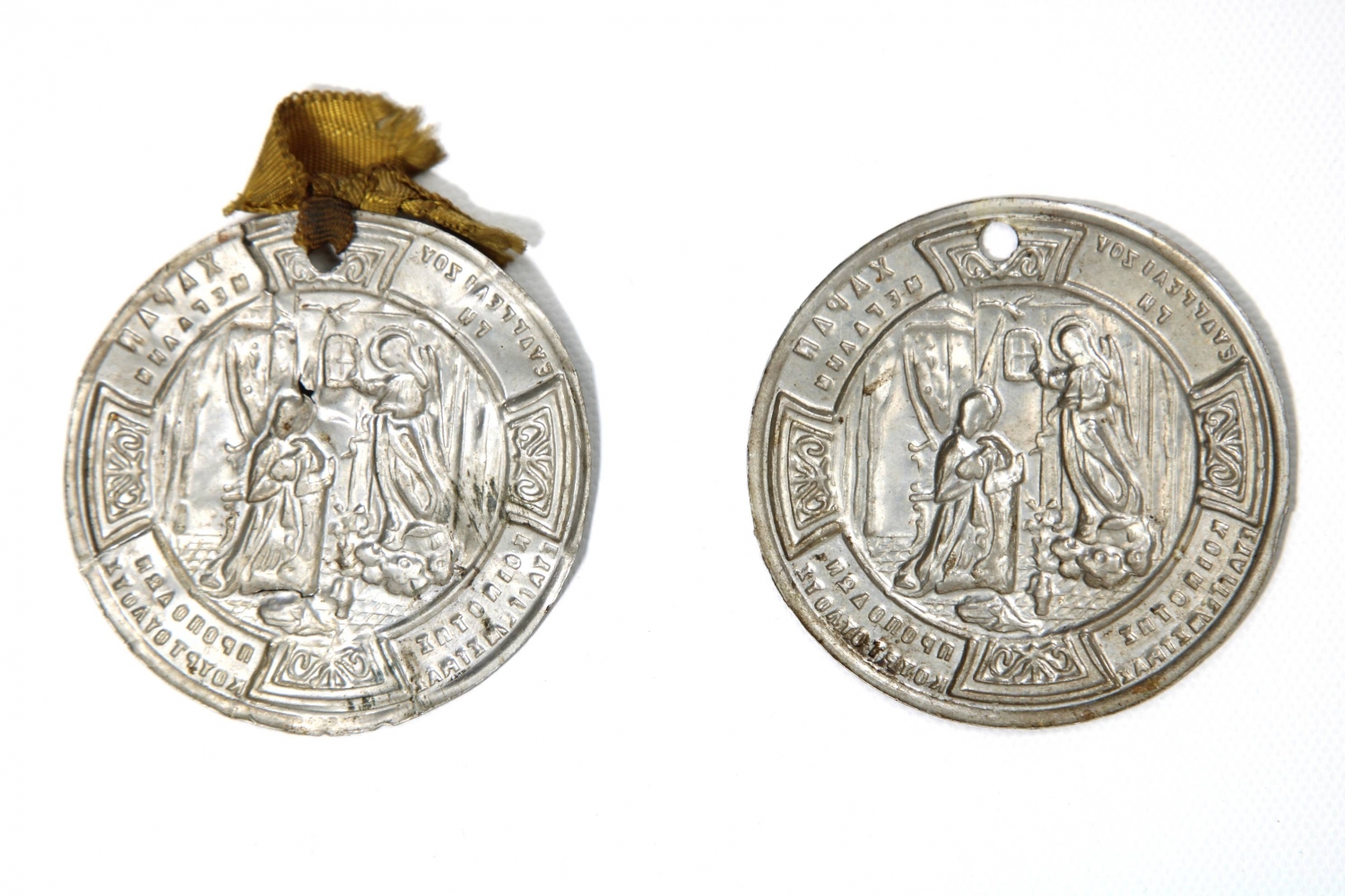 Rumca yazılı dini madalyonlar, 2 adet, 5 cm