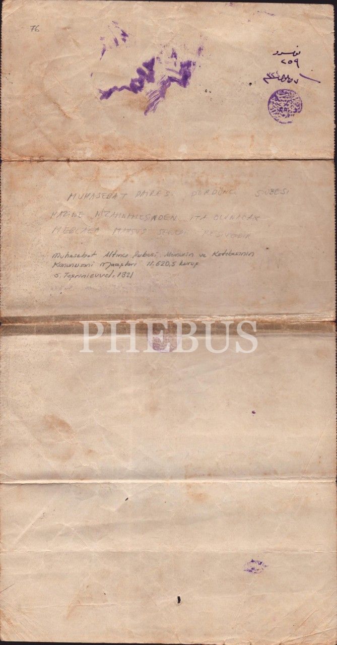 Dersaadet Muhasebat Altıncı Şubesi Memurin ve Ketebesinin 5.Teşrinievvel.1321 tarihli maaşlarına ait Senedi Resmiye