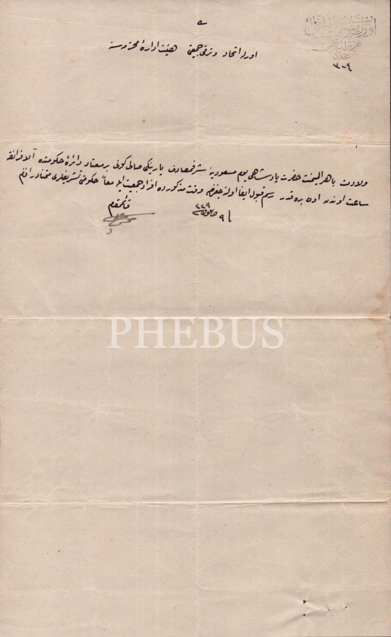 Urla Kaymakamlığından Urla İttihad ve Terakki Kulübüne ´10 Eylül 1329 (1913) tarihi saat 10 ve 11 Saatleri arası Hükümet Konağında Padişahın Doğum günü Kutlamaları yapılacağındanTeşrifleriniz Beklenmektedir.´