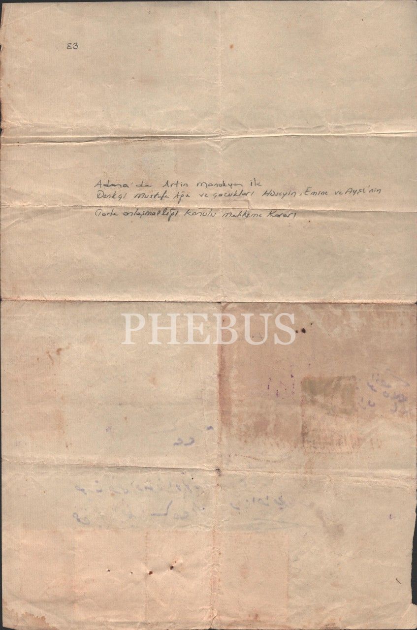 Adana´da Ermeni Milletinden Artin Manukyan Efendinin Tarla Anlaşmazlığı konulu 1916 Tarihli Hüccet